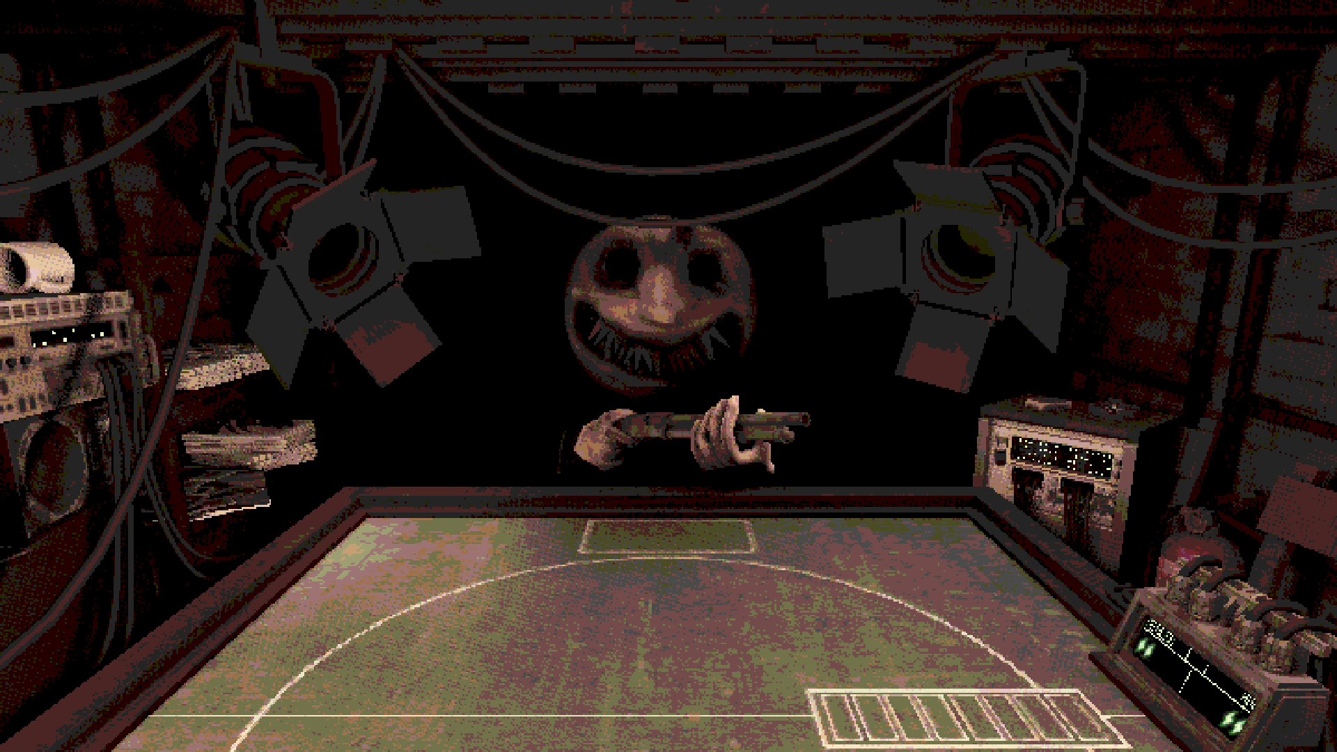 Na skromnych rozmiarów monitorze, przytwierdzonym do krawędzi stołu, wyświetlają się symbole błyskawicy. Dwie z nich są dla ciebie, dwie dla Krupiera. Postać, której wygląd jest co najmniej niepokojący, informuje, że za chwilę załaduje do strzelby trzy naboje w losowej kolejności. Tylko jeden z nich będzie ostrym pociskiem. Łatwo dostrzec, jako że cała pula jest zaprezentowana na stole, że amunicja ostra jest w kolorze czerwonym, a pociski puste w kolorze niebieskim.