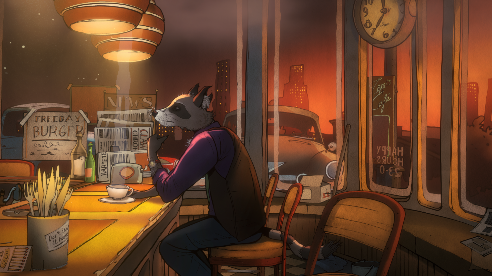 Rozgrywka jest napędzana nie tylko kofeiną, ale także dylematami, kłótniami i uczuciami. Liczne dialogi zostały napisane z odpowiednią dawką humoru i powagi, i zdecydowanie przekonały mnie, że warto zainteresować się innymi tytułami powiązanymi z Chicken Police. Niestety, na przebieg rozmów nie mamy najmniejszego wpływu, co minimalizuje chęć ponownego przejścia Zipp's Café niemal do zera. Co prawda pod koniec gry odbiorca może dokonać pewnej decyzji, jednak w ogólnym rozrachunku jest to małe pocieszenie. Jeśli chodzi o powieści wizualne, lubię się czasem podrapać po głowie i zastanowić, która opcja dialogowa będzie najkorzystniejsza dla mojego bohatera, która pozwoli na zbudowanie z kimś głębszej relacji i tym podobne. Produkcja autorstwa The Wild Gentlemen jest uboższa o ten element. Odrobinę szkoda.